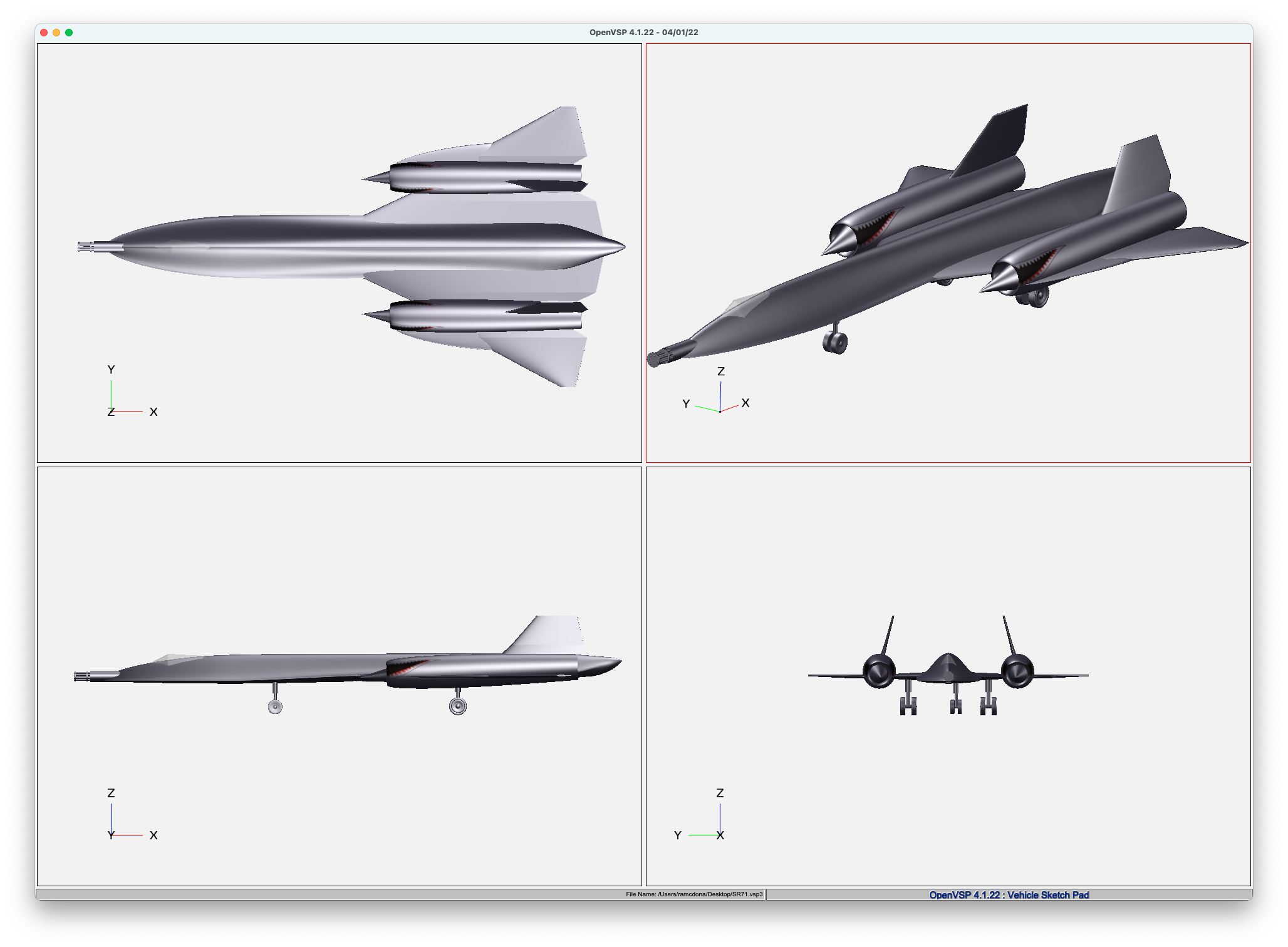 In a bold step to simplify the aircraft design process, all OpenVSP models will now be the SR-71. Optimization and design is much simpler when you already know the answer. The user interface is greatly simplified, all parameters have been eliminated.